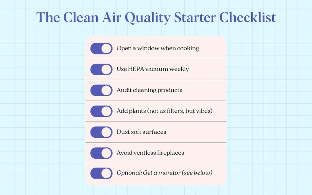 If you're ready to level up, there are home monitors that measure VOCs, CO2, humidity, and PM2.5. While not necessary, they're helpful if you have asthma, allergies, live next to a freeway, or just want to brag to your buddies about how much data you have.